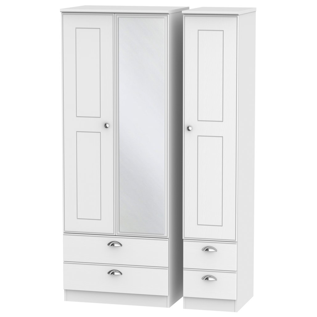This tall triple 3 door wardrobeis perfect for any bedroom when a normal wardrobe is just not large enough. Also features 2 narrow and 2 wide storage drawers for added practicality. It's easy to create a bedroom that showcases effortless chic, with this stylish range. The shaker-inspired design exudes understated luxury, each piece is finished in a number of colours with brushed steel handles and the option of a contrasting oak effect top. A well-thought-out mix of hanging and flat storage that's suitable for any room. All our furniture is made in the United Kingdom, to the highest quality. It is delivered direct to your location of choice by one of our two man delivery teams, and comes fully assembled (although legs may be removed to prevent damage in transit).
