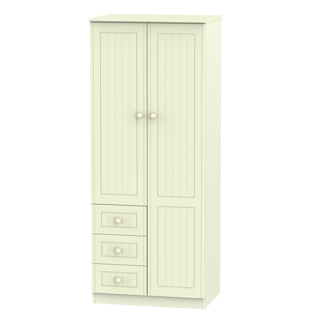 This 3' full height wardrobe features a single full height storage compartment, a second small compartment and 3 stroage drawers for extra flexibility is perfect for any bedroom. . The natural beauty of the Warwick bedroom range is complemented with curved tops and a variety of colour options. Enhanced by a delicate grooved design on all doors and drawers, with optional contrasting oak effect tops and handles this stunning bedroom range will suit any interior. All our furniture is made in the United Kingdom, to the highest quality. It is delivered direct to your location of choice by one of our two man delivery teams, and comes fully assembled (although legs may be removed to prevent damage in transit).