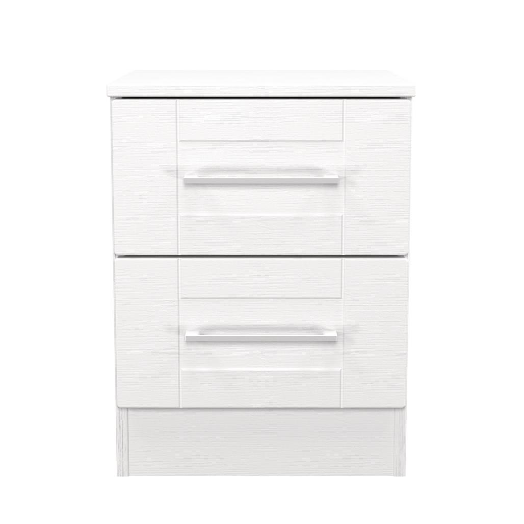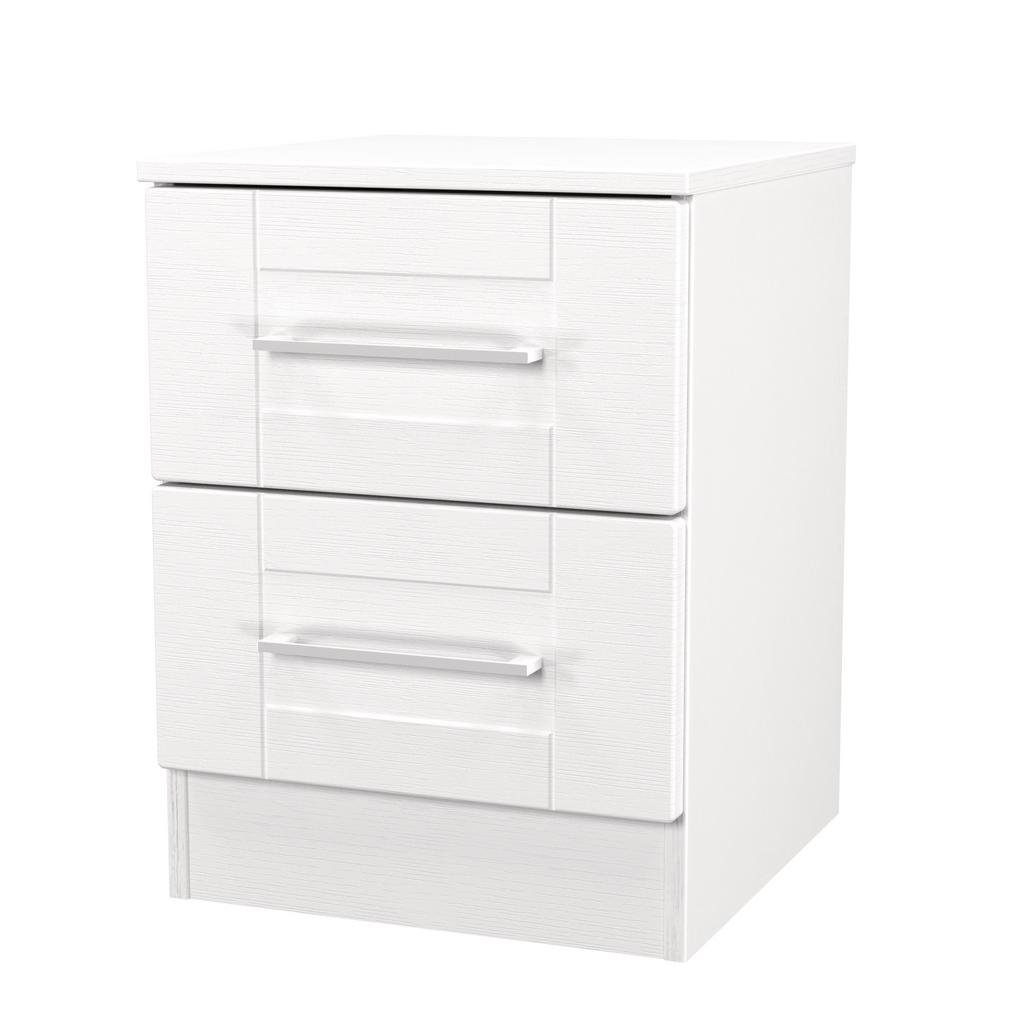 This 2 drawer bedside cabinet is practical and stylish. Perfect for any bedside or as a free standing storage unit. Wood grain effect, panelled design, recessed fronts and chrome handles, the York Range is a beautifully elegant collection. With this range you have the freedom to choose from a wide range of furniture configurations, allowing you to create the perfect combination to optimise your storage space. All our furniture is made in the United Kingdom, to the highest quality. It is delivered direct to your location of choice by one of our two man delivery teams, and comes fully assembled (although legs may be removed to prevent damage in transit).